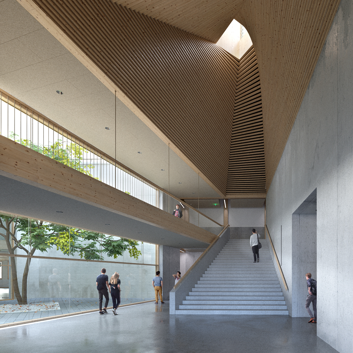 Extension en charpente bois – brique de terre compressée et restructuration, en site occupé, en trois phases, du Lycée général et technologique Henri Becquerel de Nangis (77)